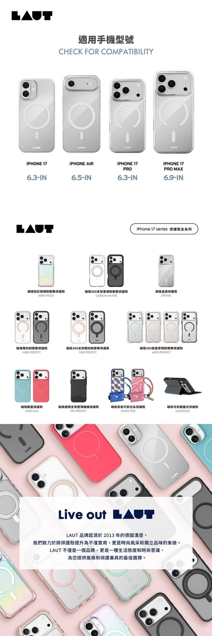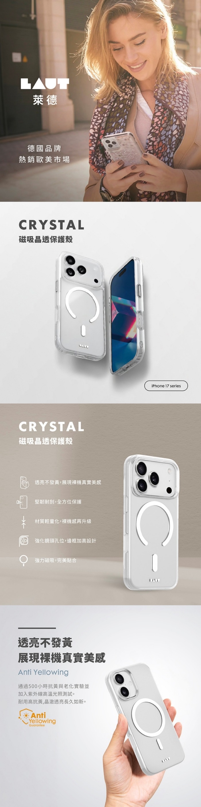 • 透明 LAUT 萊德 iPhone17Air磁吸晶透保護殼 (支援MagSafe 手機殼)