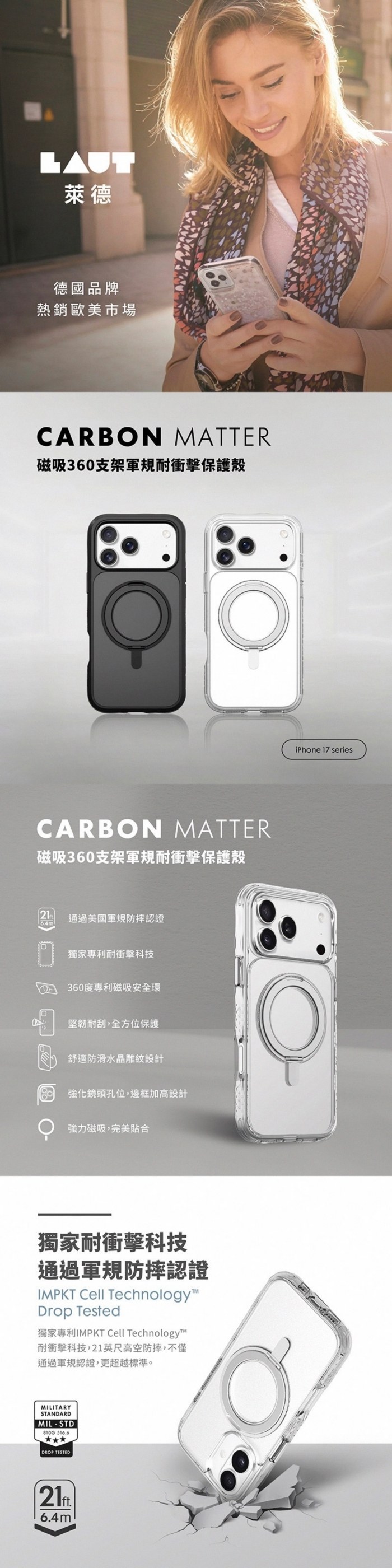 • 黑-LAUT 萊德 iPhone 17 Pro 磁吸360支架軍規耐衝擊保護殼
