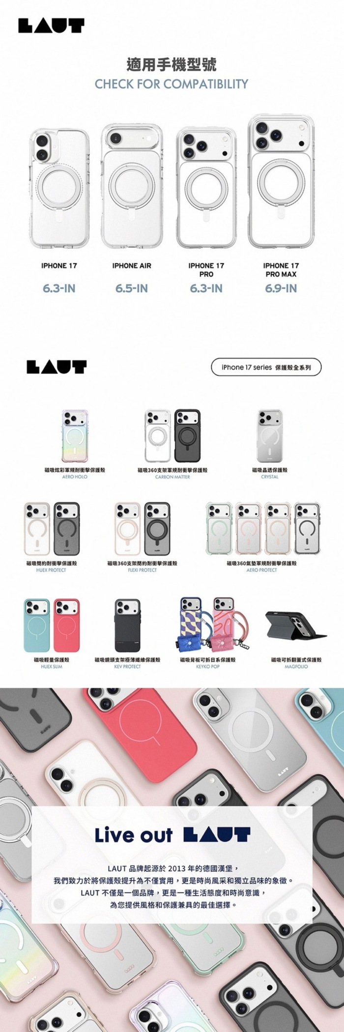 • 黑 LAUT萊德 iPhone17Pro磁吸360支架軍規耐衝擊保護殼