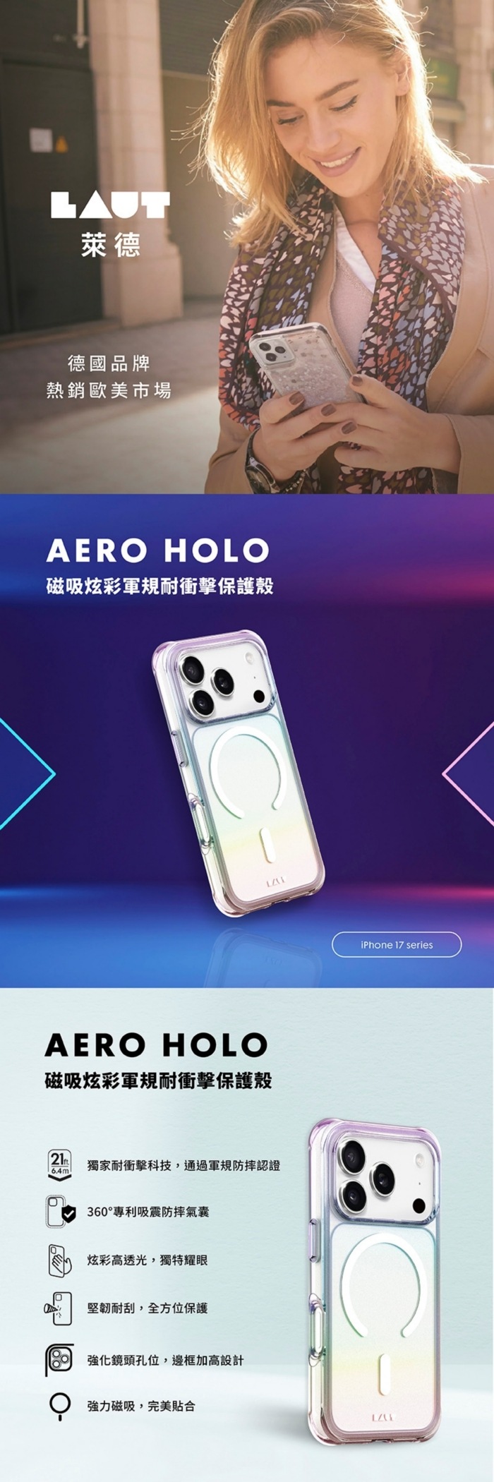 彩透白LAUT 萊德 iPhone17Pro磁吸炫彩軍規耐衝擊保護殼 (支援MagSafe 手機