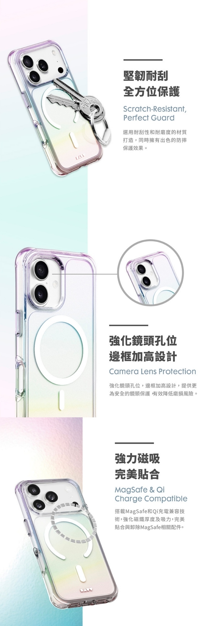 • 彩透白-LAUT 萊德 iPhone 17Pro磁吸炫彩軍規耐衝擊保護殼