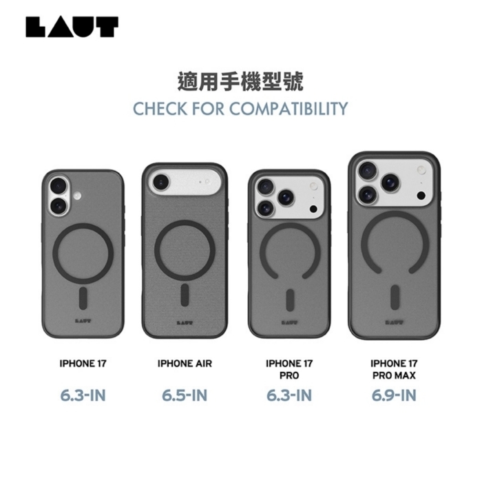 • 黑 LAUT 萊德 iPhone17Pro(支援MagSafe 手機殼)
