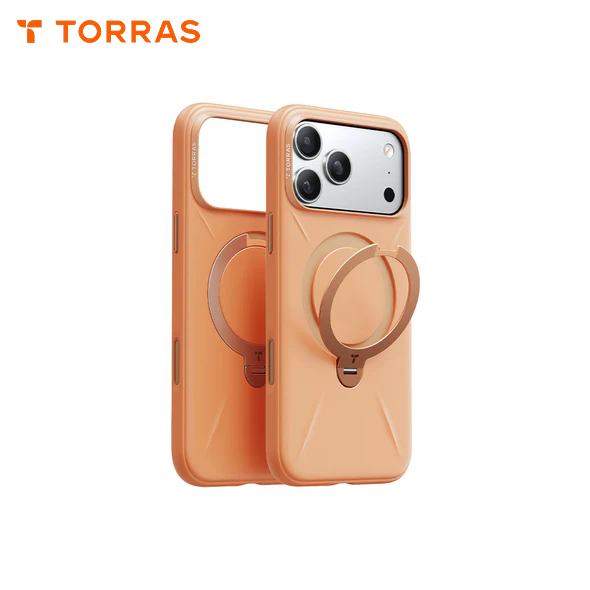 • 橘 圖拉斯TORRAS Ostand Spin Silicone Magnetic 相機按鍵旋轉支架矽膠防摔手機殼 iPhone17Pro