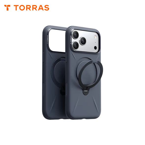 藍 圖拉斯TORRAS Ostand Spin Silicone Magnetic 相機按鍵旋轉支架矽膠防摔手機殼 iPhone17ProMax