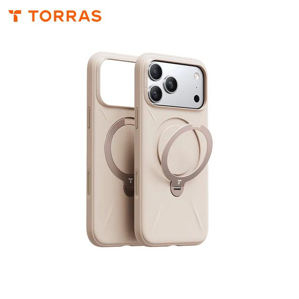 • 沙漠金 圖拉斯TORRAS Ostand Spin Silicone Magnetic 相機按鍵旋轉支架矽膠防摔手機殼 iPhone17ProMax