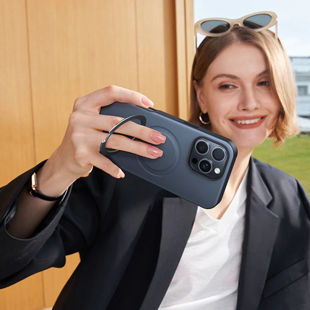 • 霧黑 圖拉斯TORRAS Ostand Spin Magnetic 相機按鍵旋轉支架防摔手機殼iPhone16ProMax