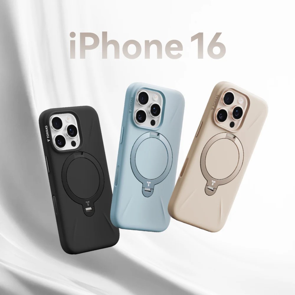 • 沙漠金 圖拉斯TORRAS Ostand Spin Silicone Magnetic 相機按鍵旋轉支架矽膠防摔手機殼 iPhone16Pro