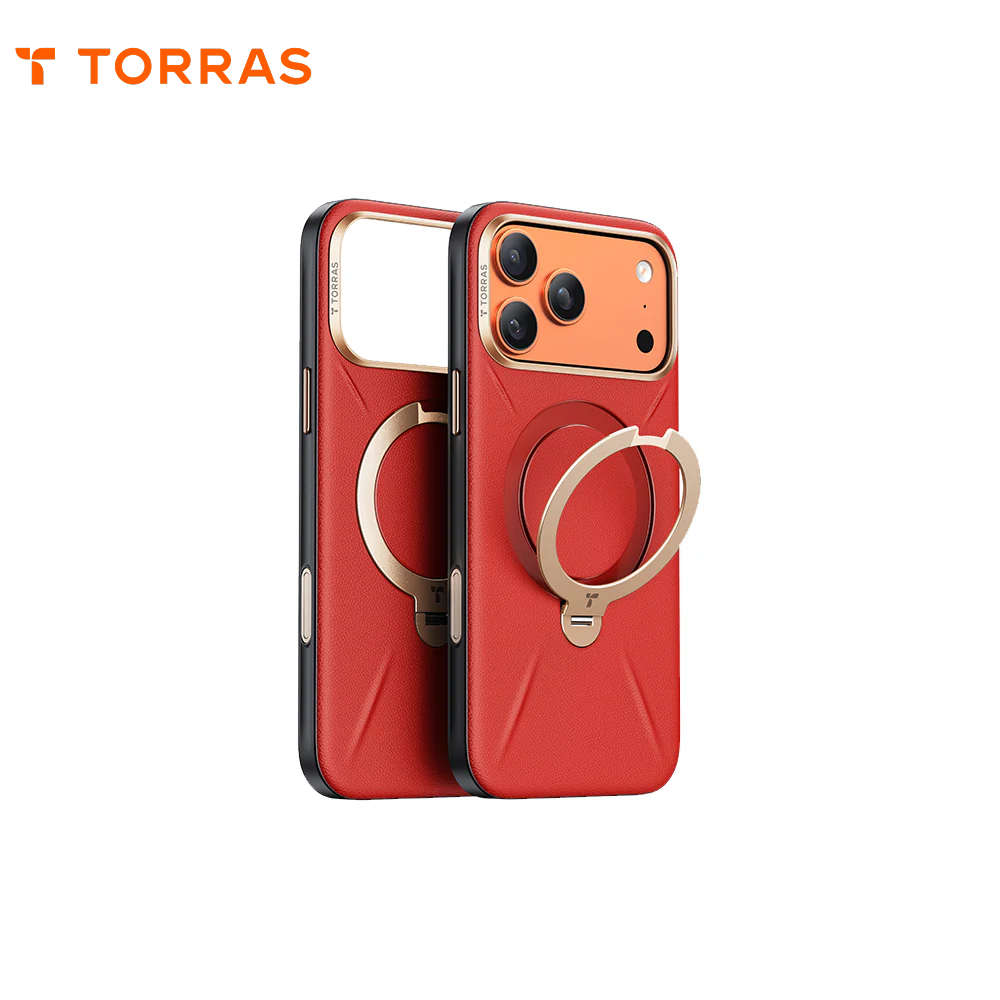 炙烈紅 圖拉斯TORRAS Ostand Spin VegSkin Magnetic 相機按鍵旋轉支架皮革防摔手機殼 iPhone17ProMax