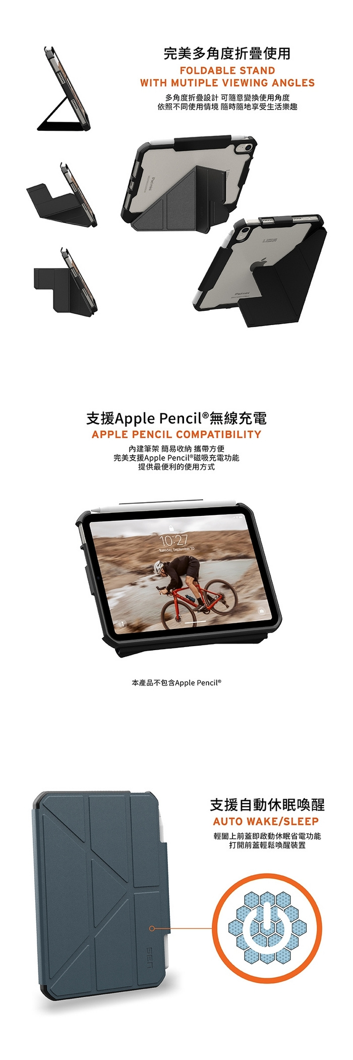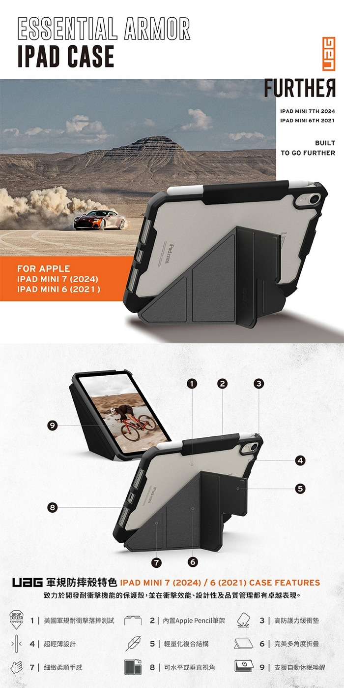 • 黑 UAG iPadMini6.iPadMini7(2024) 耐衝擊多角度保護殼