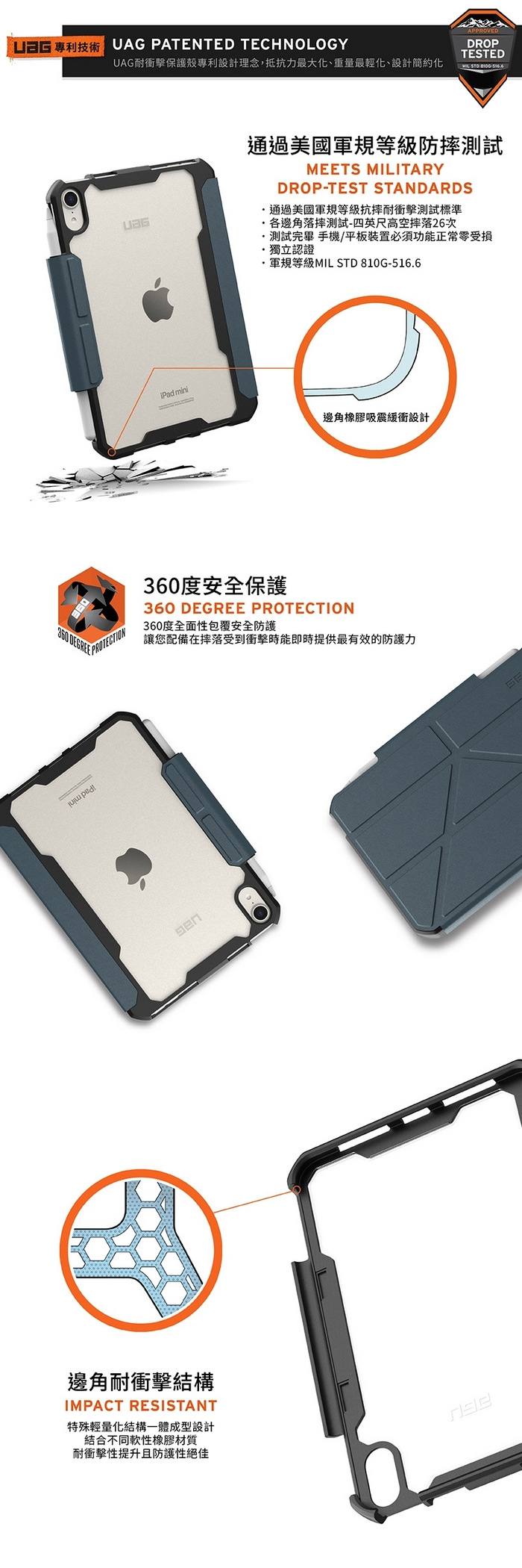 黑 UAG iPadMini6.iPadMini7(2024) 耐衝擊多角度保護殼