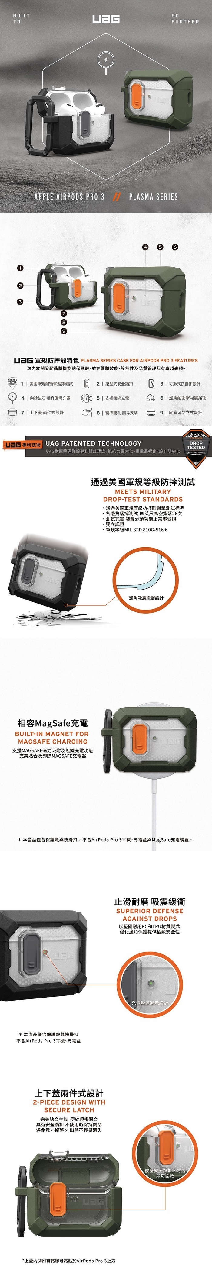 •  UAG AirPods Pro 3 磁吸耐衝擊經典保護殼-黑