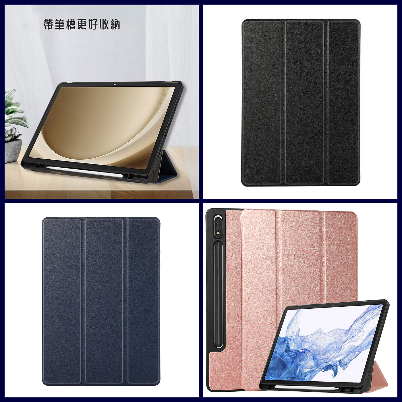藍 三星TabS8Ultra.TabS9Ultra.TabS10Ultra.TabS11Ultra14.6吋三折筆槽皮套