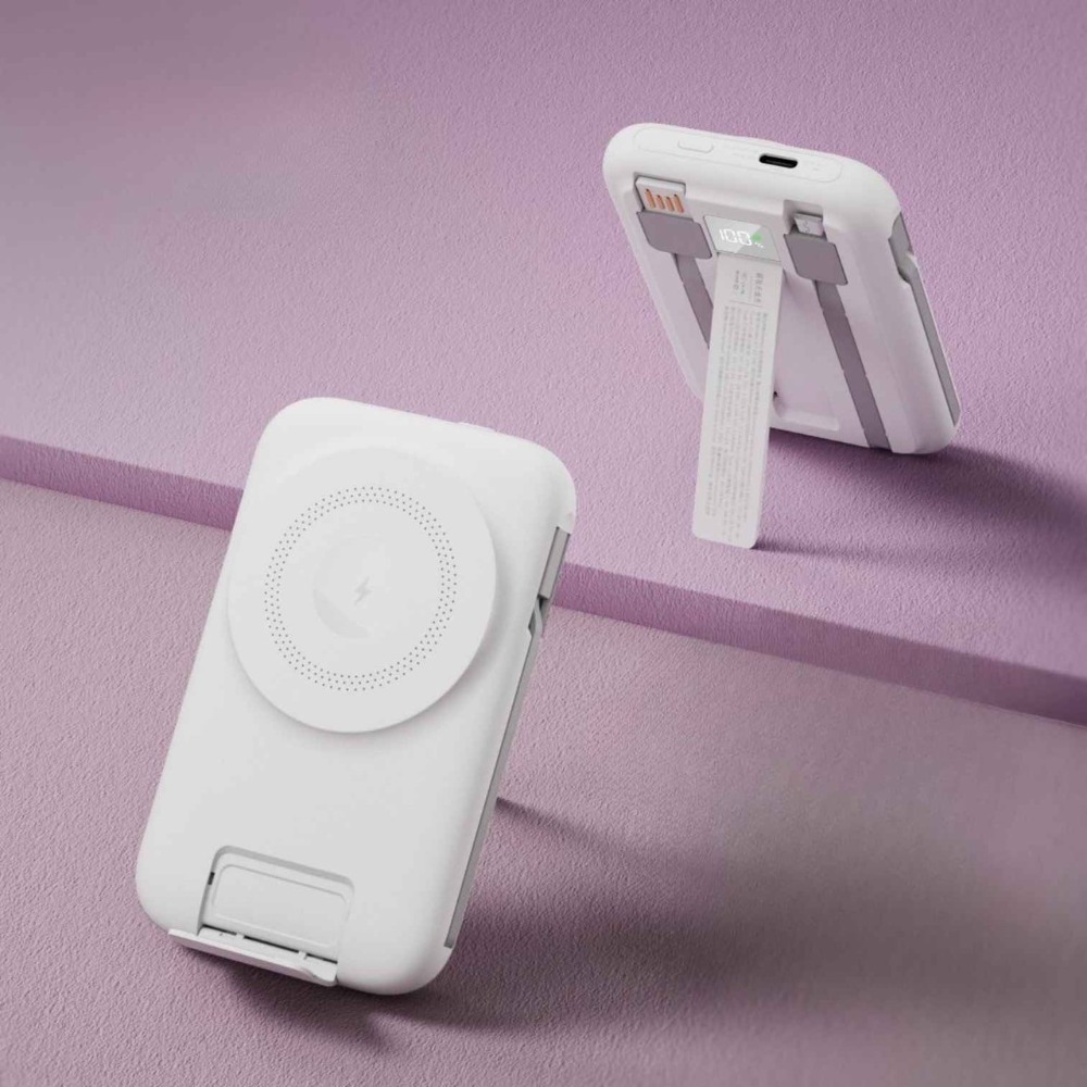 白-ONAIR全功能自帶線磁吸無線行動電源-K1(10000mAh)(3C認證)