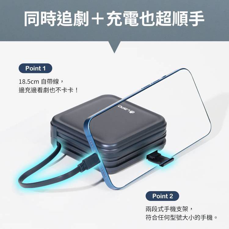 • 星夜藍 LaPO 日本松下電芯全功能行動電源WT-08S自帶線TypeC to Lightning
