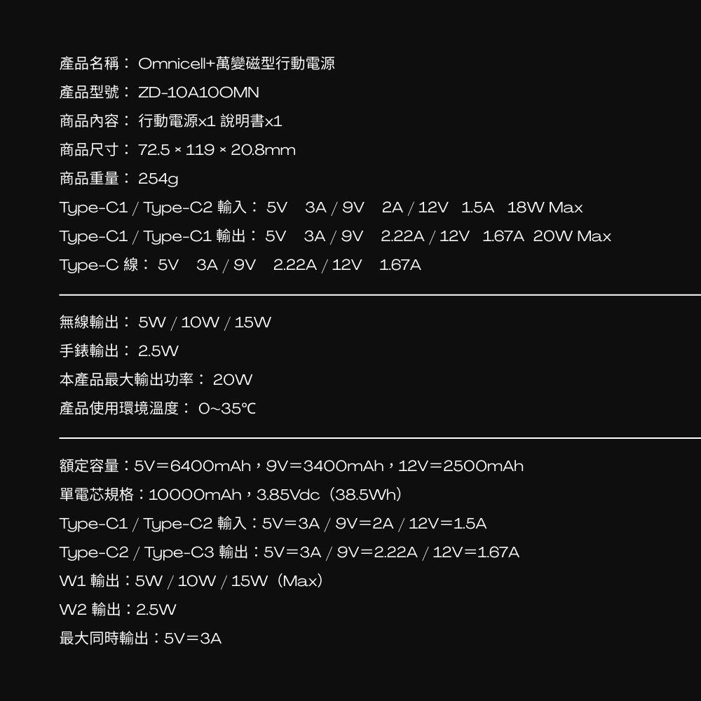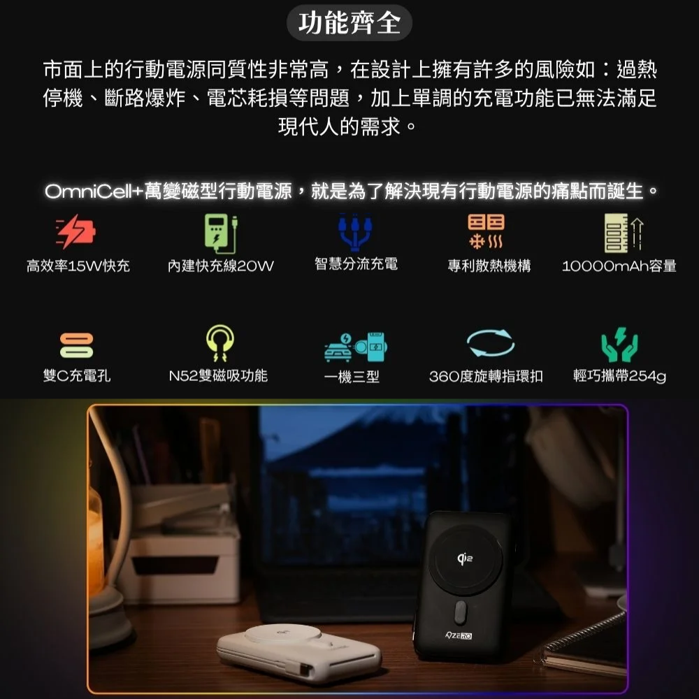 • 頂峰石【ZERO零式創作】OmniCell+ 萬變磁型行動電源(10000mAh)(3C認證)