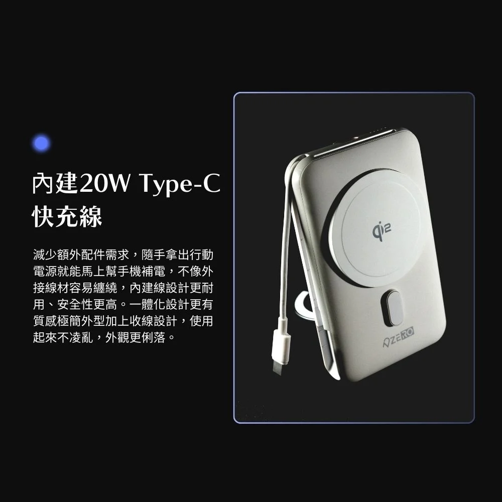• 白-ZERO 10000mAh 3C認證QI2多功能行動電源