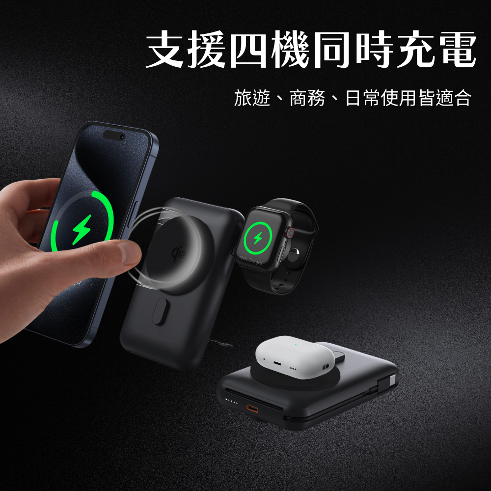 白-ZERO 10000mAh 3C認證QI2多功能行動電源