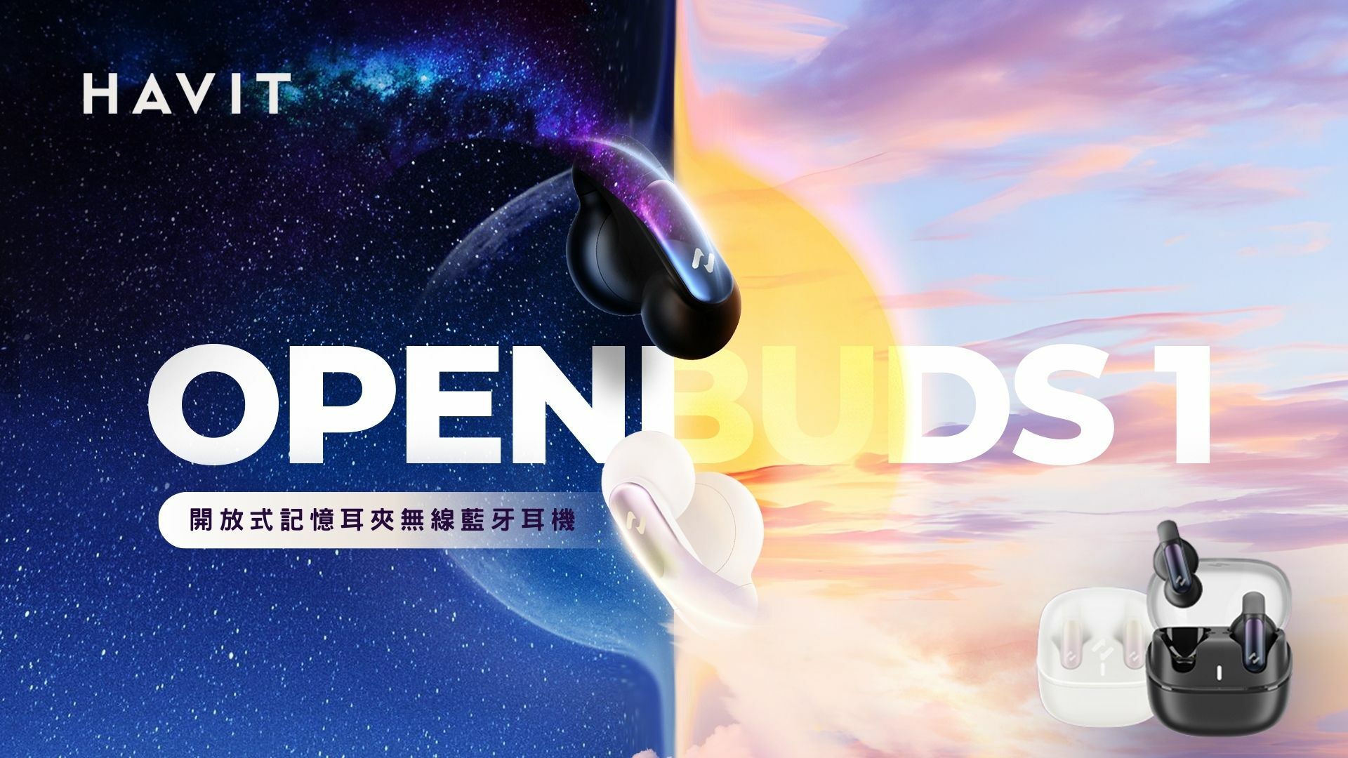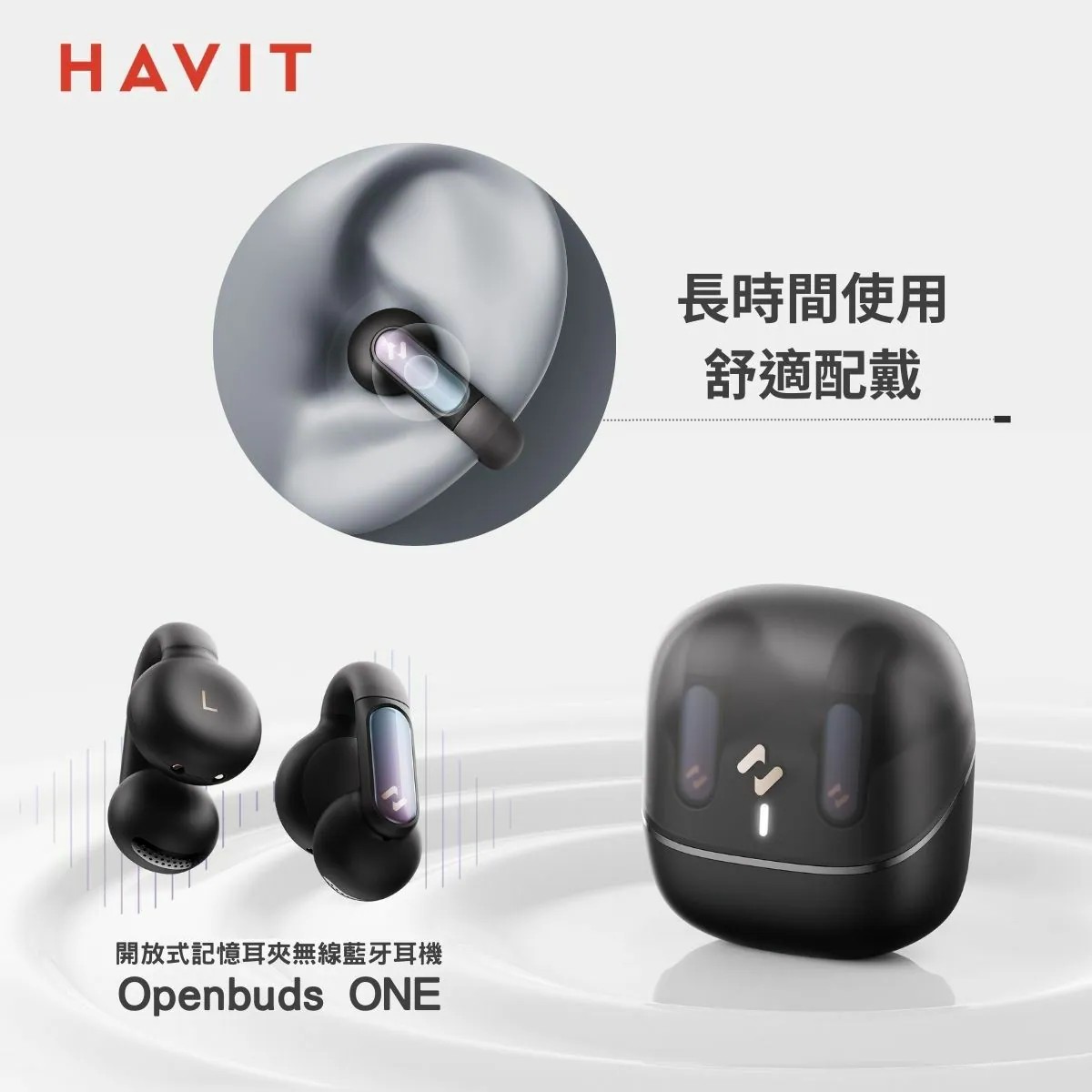 雲霧白 Havit海威特 OPENBUDS 1開放耳夾式真無線藍牙耳機