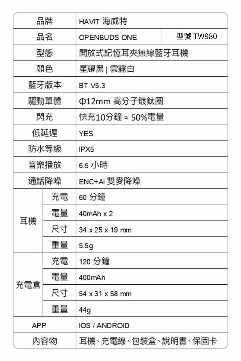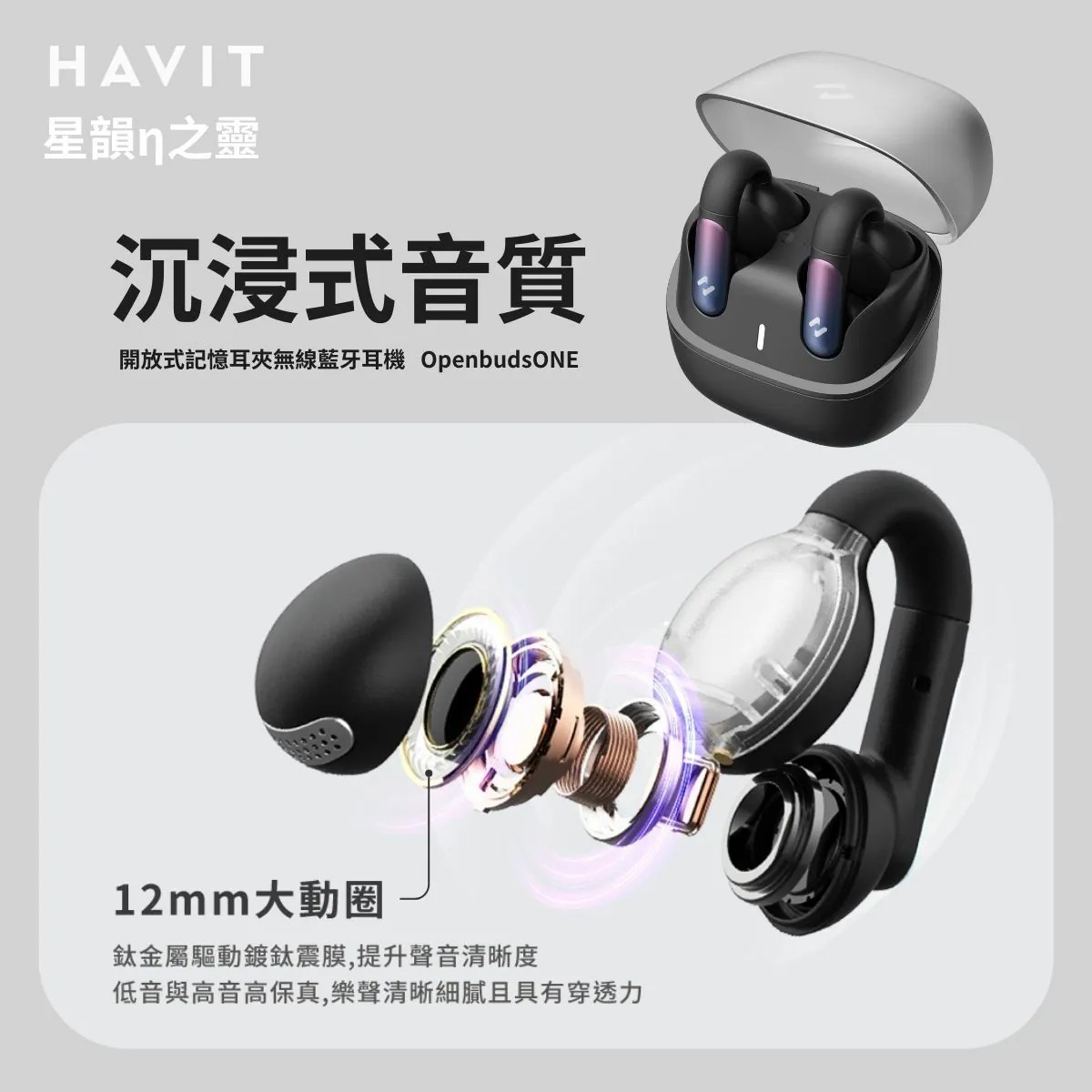• 雲霧白 Havit海威特 OPENBUDS 1開放耳夾式真無線藍牙耳機
