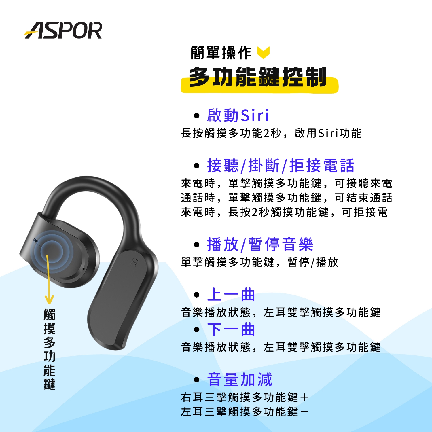 • 白 ASPOR 開放式耳掛藍牙耳機